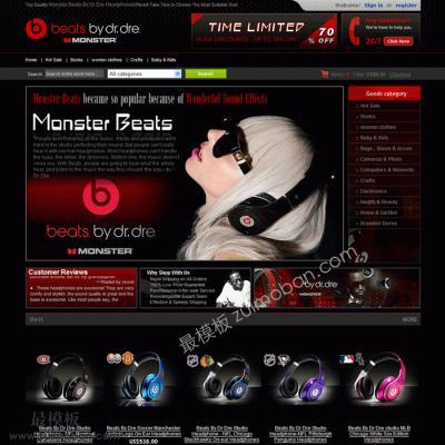 ecshop为内核,结合国外耳机商城网站特色,最模板开发出的一套精品模板。整体黑色为主题,图标红色显示,红黑为主题,大气。合适欧美用户访问特点!是您做耳机网站不可缺的模板!