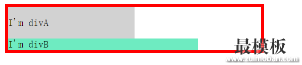 #div { border:5px solid red; width:400px; } #a { background:rgba(149, 149, 149, 0.42); // 为了方便演示,A的背景色设置成半透明。 width:200px; float: left; } #b { background: #6EEBC1; width:300px; }