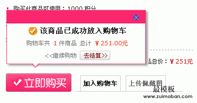 在ECSHOP商品详情页点“加入购物车”,直接在当前页弹出一个漂亮的小窗口,