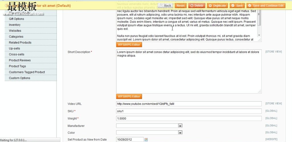 8.更改为在您粘贴的链接中的 http://youtube.com/embed http://youtu.be。例如,如果您的链接是 http://youtu.be/1QtdPfz_faM 它应改为 http://youtube.com/embed/1QtdPfz_faM 9.右上方,单击保存。 10.从前端检查如果更改视频打开产品的页面。有时您可能需要清除 Magento 缓存,以查看所做的更改。