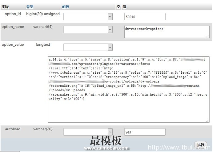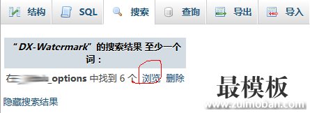 DX-Watermark设置搜索关键字,然后在wp_options表中搜索。(上图是错的,我就不重新截图了)