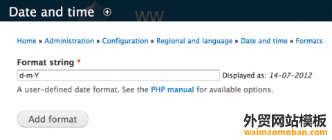 多年来维护Drupal网站,外贸网站模板注意到很大部分开发者和主题者硬编码日期和时间格式,外贸网站模板知道这可能听起来像是胡言乱语,但是外贸网站模板想演示一种更容易和更清晰的方式来创建并管理日期和时间格式 你见到多少次这样的 format_date($node->changed, 'custom', 'd-m-Y'); 在主题文件中?外贸网站模板不是说这是错误的使用format_date()(API Documentation) 函数, 但是如果你定义日期和时间格式在十个不同的主题中它将变得非常难管理一旦你想变更格式 - because remember clients love to change things just before a launch. 所有这一切疯狂的一个简单解决方案是定义一个日期和时间格式和类型