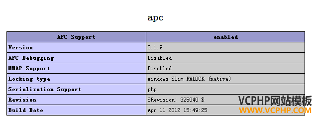 我本地的PHP 版本为 5.4.8 VC9 的,访问 http://downloads.php.net/pierre/ 下载的是 php_apc-3.1.10-5.4-vc9-x86.zip,下载的压缩文件中包含两个文件夹,是 nts和ts,对应的是 Non Thread Safe和Thread Safe 两种不同版本。可以查看PHP信息来确定PHP所属的线程版本。 2. 将php_apc.dll 拷贝到 php ext文件夹中去,在php.ini中设置支持apc扩展模块,添加添加extension=php_apc.dll,在php.ini底部添加如下的 APC的配置参数 3. 重启Apache服务器,查看phpinfo中是否存在APC的配置项,存在,就是配置成功