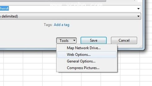下一步,转到工具 > Web 选项 (旁边保存按钮)。
