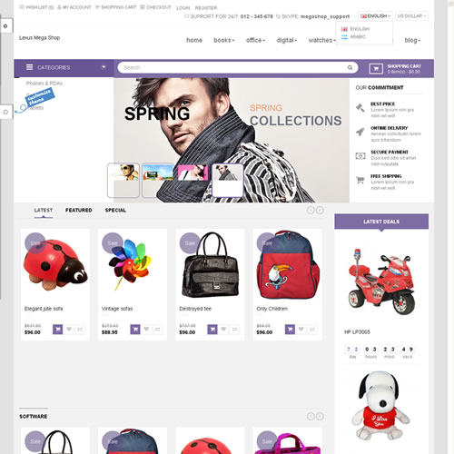 雷克萨斯MegaShop响应Opencart模板适用于任何类型的高科技产品,手机、电脑、时装店和各种各样的市场业务,需要一个在线功能丰富和美丽的存在。