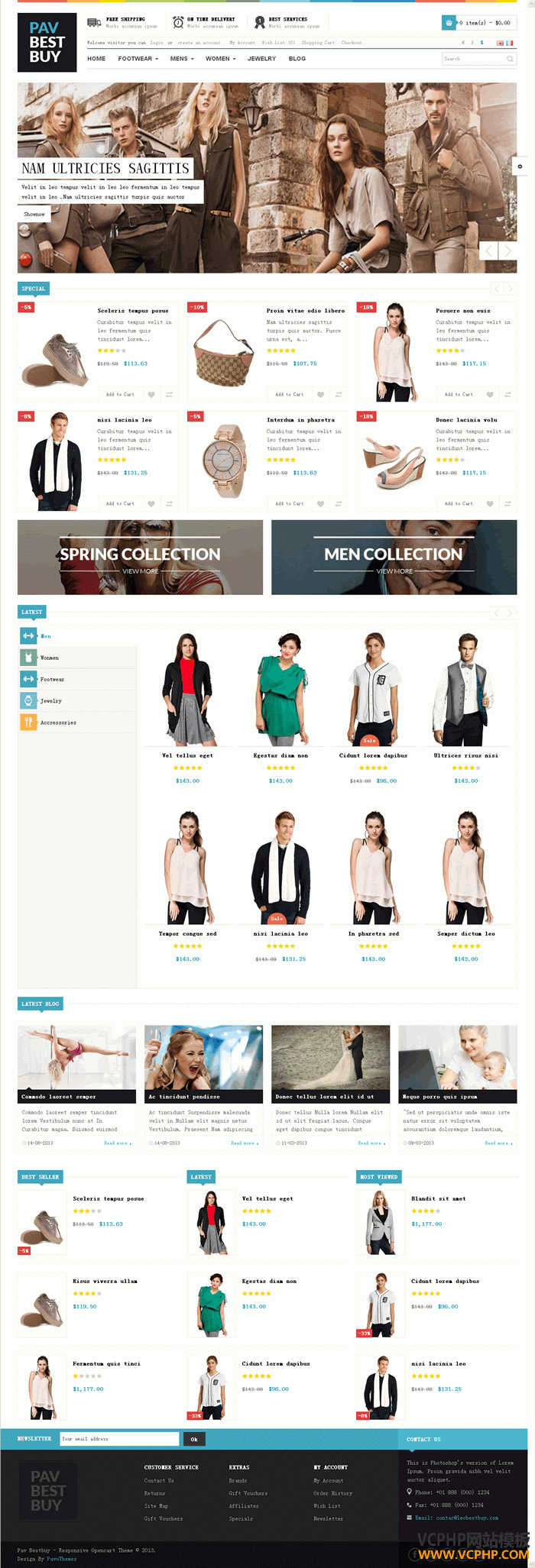 专注于简单印象的黑白配色设计和谐与其他颜色。模板布局模块实现了漂亮的幻灯片,折扣,最新产品块商店卖很多产品将是一个不错的解决方案。