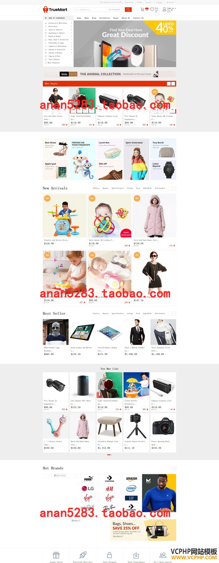 支持最新版本的OpenCart 3.0。x, Truemart的主题为任何电子商务网站都提供了一个现代模板的功能,如:每日交易、快速浏览、wishlist、产品比较、Mega菜单、客户横幅滑块、产品滑块、标签产品、博客、特色类别……首先,Megamenu(水平菜单、垂直的Megamenu和Mobile菜单)显示了许多带有子类别的产品类别,或者链接到其他页面。其次,通过创建cms模块,您将会显示出许多平滑效果的精美图片,并使网站更加美观。接下来,滑块和标签产品滑块显示类型的产品,如新,交易,畅销书,大多数认为…,每个类别的产品标签。除此之外,这个博客也被整合在一起,以保持读者对最新消息的更新。最后,由于具有多语言、多货币、产品变焦等诱人的主页滑块,这一主题将会提升客户的体验。