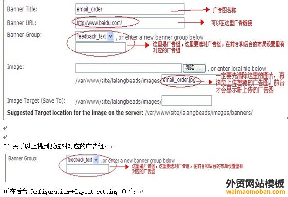 在后台可以把之前的广告图删除,重新建广告图,也可以在已有的广告图下面更新自己网站的广告图。(如果是要删除之前的广告图重新添加,请记下该图片调用是那个广告组的,因为程序在建站的时候,已经定义好那个广告组显示在网站那个位置的了。)