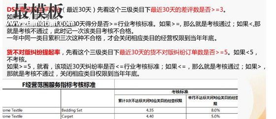 二、门槛调整及店铺品类发展规划 速卖通近日发布了2016新规公告,各行业门槛均有调整。家居大类下均有指标。 1、需要关注的是,店铺现在经营的类目是否符合考核标准。