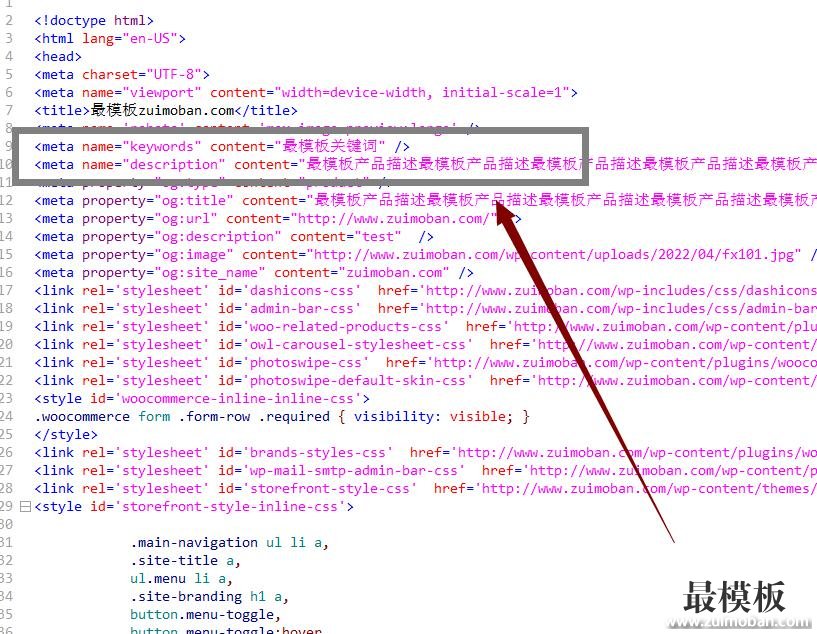 放以上最模板的代码放于程序当中,即可! 以后程序自动运行,自动在WooCommerce产品页显示关键词keywords与描述description元标签!