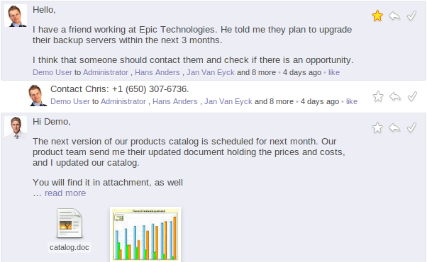 在工作中运用到邮件模块,正如您平时处理邮件一样。不论您平时用的是微软公司的outlook还是gmail邮箱,不需要改变您的工作方式,每个人仍然是高效的。 。OpenER的客户管理系统可自动发送、分类以及过滤接收邮件等来处理接受的邮件,并且将邮件发送至相应的客户商机中或者销售团队中。 新的客户线索可以联机创建,并且自动告知对此感兴趣的销售人员。